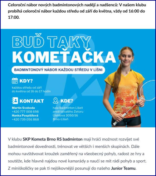 KAWASAKI SKP Kometa Team - badminton pro nejmladší.